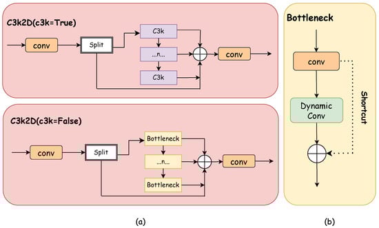 C3k2D design and internal structure. (a) C3k2D structure; (b) Dynamic bottleneck structure.