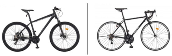 Difference between images of MTB (left) and road bike (right) (Image source: Samchully Bicycle Manufacturing Company website in Republic of Korea, https://www.samchuly.co.kr/index.php/(Accessed on 20 April 2025.).