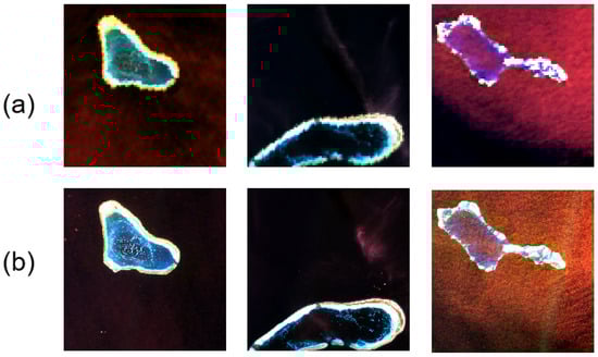 This work consists of three distinct datasets of paired S2-MSI and S3-OLCI products covering several key island regions in the South China Sea, including Huangyan Island, Sabina Shoal, and Discovery Reef. Table 1 summarizes the selected scenes and their acquisition dates and locations. The datasets chosen for construction were all cloud-free products downloaded from the Copernicus Open Access Centre and preprocessed using the Sentinel Application Platform (SNAP). For S2, the Level 2B MSI images were spatially resampled to 20 m using the Sen2Cor processor to generate homogeneous data cubes for HR panchromatic inputs. Atmospheric corrections were performed for the S3-OLCI images used as multispectral inputs. Finally, the OLCI images were reprojected onto the corresponding S2 plots to capture the overlap region between the two sensors of the construct (see Figure 3).