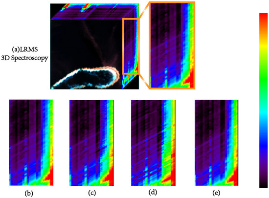 Spectral errors of 21-band experiments on the HG dataset. From left to right: (a) Selected subregions. (b) BDSD-PC. (c) MTF-GLP-Reg-FS. (d) RR. (e) MTF-GLP-HPM-HSMI.