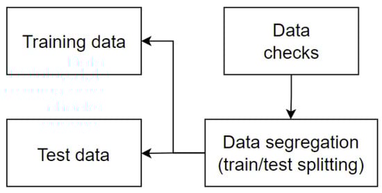 The initial step, and arguably the most crucial, is to generate data that are suitable for model training. As illustrated in Figure 2, this stage of the process entails a number of activities, including an exploration of the database to gain insight into its structure and content, the replacement or removal of corrupted data or data that are unsuitable for the model, an analysis of the database’s dimensionality, and an examination of the relationships between features.