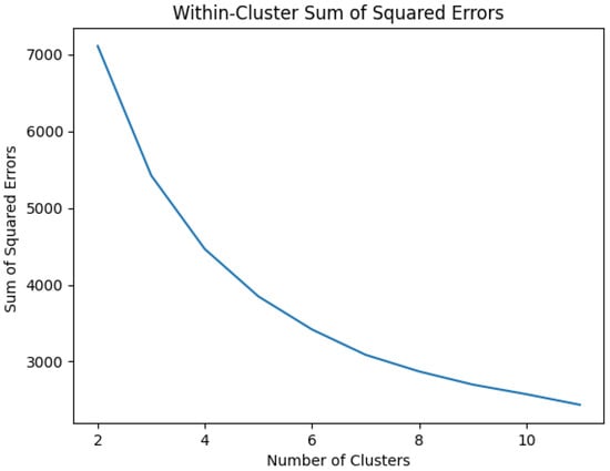It was crucial to visualize the errors in the K-Means model to ascertain the optimal number of clusters for training the model. Typically, one should seek an elbow shape and base the value on that. However, as illustrated in Figure 30, the plot lacks a defined elbow shape. Consequently, alternative methods were employed to determine the ideal number of clusters for the model.