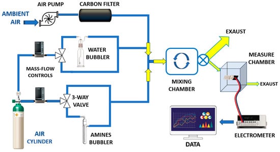 All measurements were carried out at room temperature (20 ± 2 °C) using a custom-designed gas exposure and measurement system (Figure 5).