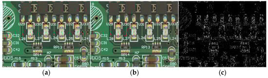 With the fast growth of the electronic information industry, printed circuit boards (PCB) are more and more widely used in various types of electronic equipment. For PCB assembly, due to the need to install various types of electronic components, surface mount technology (SMT) has become an important electronic assembly technology [1]. SMT replaces traditional plug-in technology and offers the advantages of lower assembly volume and weight, high density, and high reliability. However, due to instability in SMT welding processes such as reflow soldering or wave soldering, the welding of electronic components can produce random defects, such as missing electronic components, offsets, tombstoning, etc. If these defects are not detected, they will greatly impact PCB performance. Therefore, in actual production, surface solder defect detection in the electrical components of PCBs has become a key issue [2,3,4].