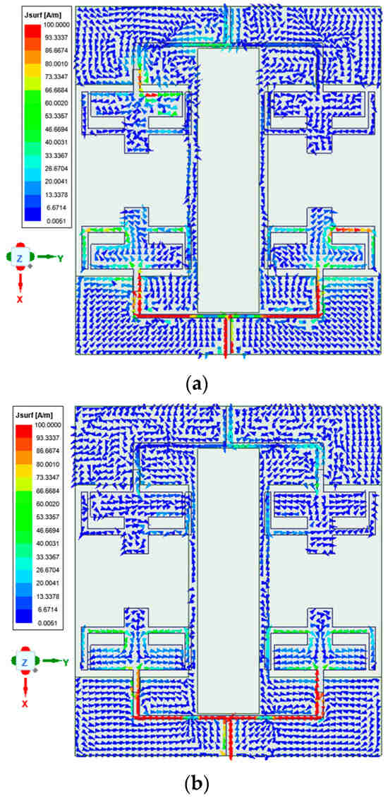 Vector current distribution: (a) 3.75 GHz; (b) 5.9 GHz.