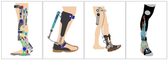 Example AAFO designs proposed by previous researchers featuring integrated sensor–actuator systems for gait event detection and providing ankle joint assistance [9].