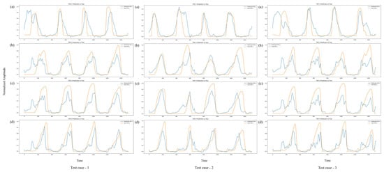 The evaluation of the test dataset, which consisted of unseen walking trials from subject V, who met the same inclusion criteria and demographic profile as the primary cohort, resulted in a comparable MSE of 0.0171 and MAE of 0.0832. The close alignment between training and test errors confirms that the model generalized effectively beyond the training data, maintaining predictive accuracy across the different individuals. This is particularly notable given the well-known variability in EMG signals associated with factors such as muscle morphology, activation strategies, and gait kinematics across subjects. Figure 12 further illustrates the model’s predictive performance on three independent walking trials from subject V (test cases 1–3).