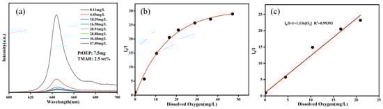 Figure 6a displays the photoluminescence emission spectra excited at 380 nm under varying DO concentrations. Notably, the photoluminescence intensity decreases progressively as the DO concentration increases, demonstrating clear oxygen-dependent quenching.