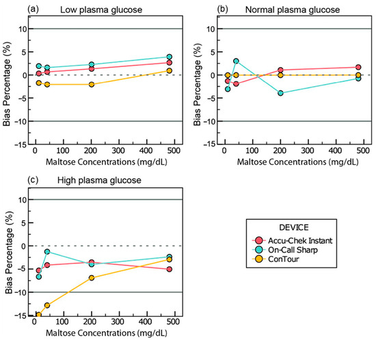 - Cho, J.; Ahn, S.; Yim, J.; Cheon, Y.; Jeong, S.H.; Lee, S.-G.; Kim, J.-H. Influence of vitamin C and maltose on the accuracy of three models of glucose meters. Ann. Lab. Med. 2016, 36, 271–274. [Google Scholar] [CrossRef]