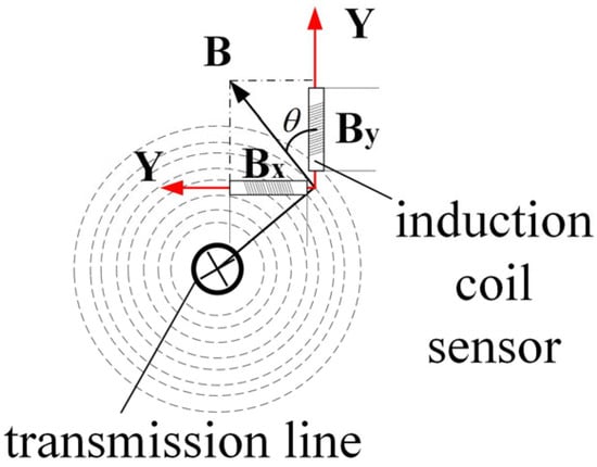 where Bx(k) and By(k) are the components of the magnetic induction strength B in the X and Y directions, which can be detected by placing a one-dimensional induction coil sensor axis along the X and Y directions within the magnetic field, where k is a parameter of the type of electric power fittings; N is the number of turns of the magnetic sensor coil; and S is the magnetic sensor cross-sectional area.
