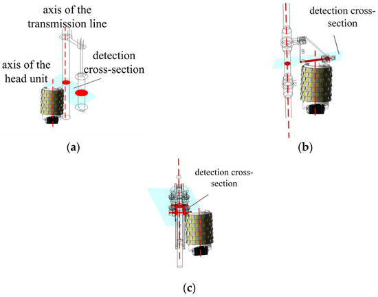 Detection cross-section of electric power fittings; (a) cross-section detection of damper; (b) cross-section detection of suspension clamp; (c) cross-section detection of tension clamp.