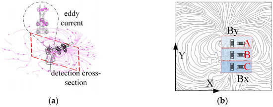 Impact of damper on magnetic field and detection method: (a) spatial magnetic field line distribution; (b) magnetic field line distribution at detection cross-section.