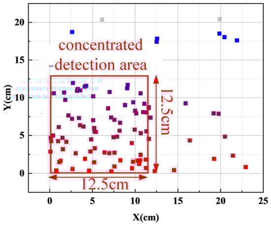 From the average accuracy perspective, the model maintains an average accuracy of over 95% within the 5 cm to 10 cm detection range. However, in the 15 cm to 20 cm range, the average accuracy falls below 95%, especially at 20 cm, where it is only 92.5%. This significant change in accuracy indicates that the model’s optimal detection range is between 0 cm and 10 cm. This conclusion is highly consistent with the optimal detection range obtained through particle swarm optimization (PSO) in Section 4.2, thereby strongly proving the effectiveness of the method used in this study to eliminate position disturbances and improve detection accuracy by employing PSO.