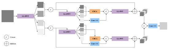 Similarly, in the second path, and are concatenated and processed through LL-DWT: