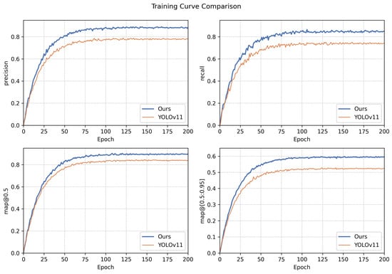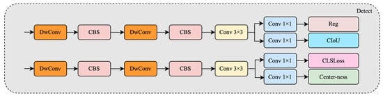 Figure 7 shows a structural comparison between the original YOLOv11 detection head (bottom) and our improved head (top). While the original head employs a shallow layout combining CBS and depthwise convolution paths, our improved version deepens the structure by stacking two depthwise separable convolution blocks, each followed by a CBS module. This is followed by a convolution and multiple convolutional branches to output the final predictions.
