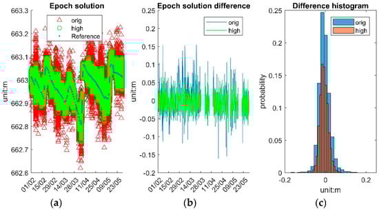To solve this issue, we introduce the concept of in the WSE estimation mathematical model in Equation (3) to mitigate the errors or biases associated with the geoid model, utilizing several days of benchmark observations. According to Equations (6) and (11), can be estimated using epoch observations that convert ellipsoidal height and the reference value , or averaged observations and .