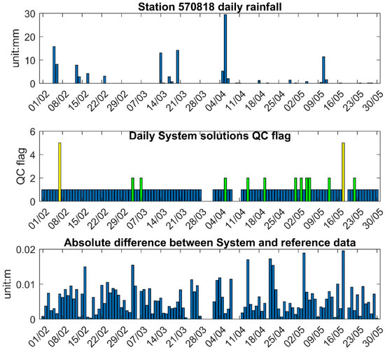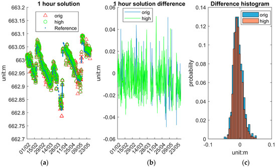 Figure 8c. While differences are generally within 5 mm, several instances exceed 1 cm, with a maximum discrepancy of 5 cm on 7 April 2024. Therefore, for a more accurate evaluation of WSE estimation performance, it is necessary to generate and utilize 6 h reference average solutions, consistent with the GNSS data collection session.