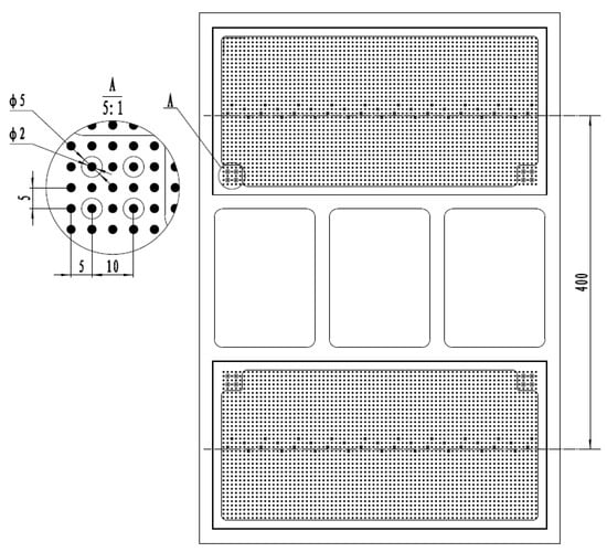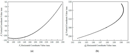 - Transform to the measurement reference plate coordinate system via the pre-calibrated four-parameter set (, , , ), resulting in . The coordinate distribution of Camera 1 centered in this system is shown in Figure 8a.