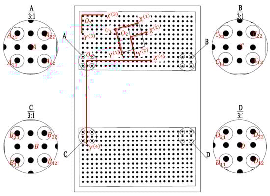 - Prior to initiating the measurement program, the initial coordinates of the calibration circle center closest to the field-of-view center and its right adjacent circle center were recorded in the 2D dot array calibration plate coordinate system: , .