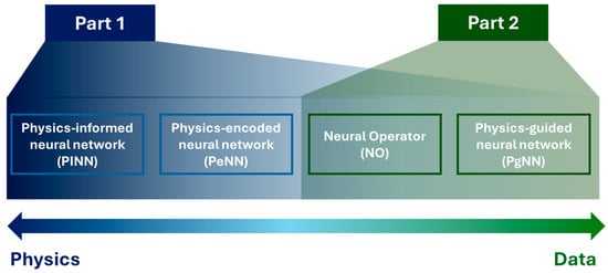 Owing to its proven benefits, the field is witnessing diversified research efforts. Thus, the current literature of SciML refers to different nomenclature such as “physics-guided”, “physics-enabled”, “physics-based”, “physics-informed”, “physics-constrained”, and “theory-guided”, to name a few. Faroughi et al. [58] classified the SciML models into four prime methods: physics-guided neural networks (PgNNs), physics-informed neural networks (PINNs), physics-encoded neural networks (PeNNs), and neural operators (NOs). Among these four models, PINNs and PeNNs are considered physics intensive. On the other hand, NOs and PgNN approaches are mostly data driven.