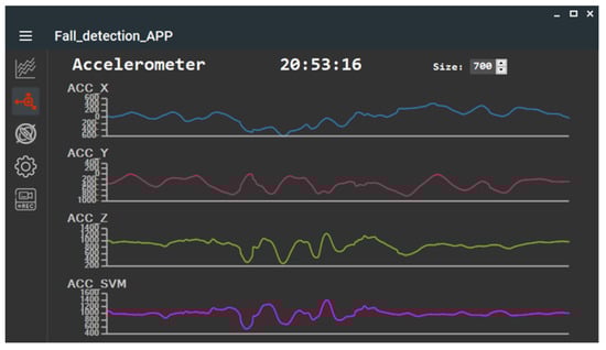 In the experimental analysis, setting the acceleration range to ±8 g and the angular velocity range to ±500 dps was sufficient to meet the fall detection requirements. Therefore, this configuration was chosen for the experiments and analysis in this study.