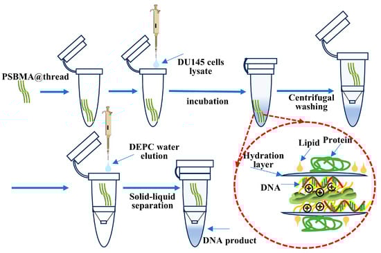 Scheme of extracting DNA from tumor cells via PSBMA@thread-based solid-phase extraction.