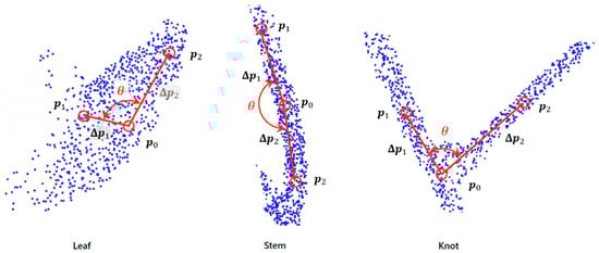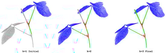 In this study, the parameters and shown in Figure 1 were set to 5 mm and 20 mm, respectively. These values were determined based on the actual sizes of soybean organs—such as stem diameter and internode spacing—and the point cloud density obtained in our measurement environment, in consultation with domain experts.
