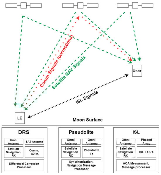 - Differential Reference Station (DRS): the local sensor provides corrections of the satellite pseudorange measurements to the user on the lunar surface;