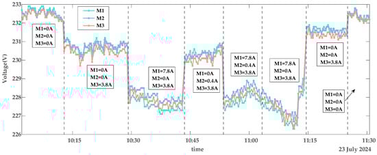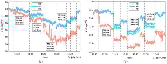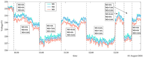- Normal contact experiments: M1, M2, and M3 are connected under standardized terminal contact conditions, with voltage and current data systematically recorded across multiple load configurations to establish operational baselines.