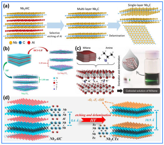 - Ponnalagar, D.; Hang, D.; Islam, S.E.; Liang, C.; Chou, M.M. Recent progress in two-dimensional Nb2C MXene for applications in energy storage and conversion. Mater. Des. 2023, 231, 112046. [Google Scholar] [CrossRef]