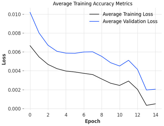 The system model is validated by comparing training accuracy metrics (Figure 5) to ensure that the trained model parameters were optimal given the datasets provided. When training a model, great care needs to be taken when tuning model hyperparameters, as it is easy to underfit or overfit a model, which results in noisy and inaccurate predictions. Underfitting a model causes bad predictions as the model is unable to establish a relationship between inputs and outputs from the training dataset. Likewise, overfitting a model causes the opposite effect, where a model will attempt to apply familiar relationships in a repetitive manner by looking at patterns in the data instead of learning the nature of these relationships from the data. To prevent underfitting and overfitting from occurring, we use early stopping, which determines the most recent epoch where the difference between the training loss and validation loss was the most minimal, which is deemed to be the best fit for the model. By ensuring that we use the best fit for the models, we can have high confidence that the predictions that are produced by the models and the global model produced following aggregation are as accurate as possible. This is especially true given that we utilize model hyperparameter optimization to ensure that the initial hyperparameters reduce the initial losses at the beginning of the process.