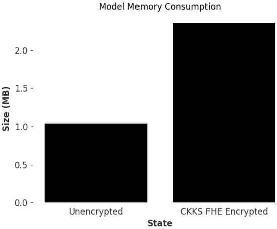 Memory consumption. Comparison between unencrypted encoded model and the CKKS FHE-encrypted encoded model.