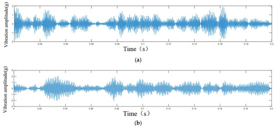 After completing the signal acquisition work on the above-mentioned acquisition system, subsequent analysis and comparison were carried out on the collected original vibration signals. Firstly, the original vibration data were converted into a one-dimensional matrix array of the double type. Then, the signal images of the acceleration data of each channel collected in the time domain were drawn to facilitate the comparison and analysis.