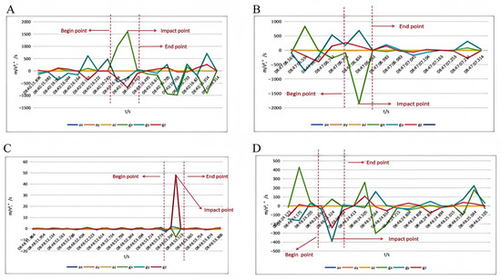 Temporal fluctuation patterns of different shot outcomes: (A) fluctuation in the rebounding sample; (B) fluctuation in the hollow sample; (C) no-goal shot fluctuations; and (D) variability in other goal states.