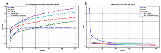 As shown in Figure 15A–E, the CNN-LSTM-Attention model demonstrated the strongest recognition ability in this task. It not only performed extremely well on relatively easy-to-recognize categories such as HB and OT but also achieved a relatively high accuracy on more challenging categories like RB and SM. Therefore, the CNN-LSTM-Attention algorithm was identified as the best choice for the goal states recognition task. This also highlights the practical advantage of integrating attention mechanisms, which can significantly improve model performance in complex time-series and multi-class classification tasks by allowing the model to focus on the most relevant temporal features.