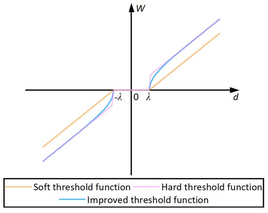 As shown in Equation (14), the improved threshold function is continuous at , which overcomes the drawback of hard threshold denoising.