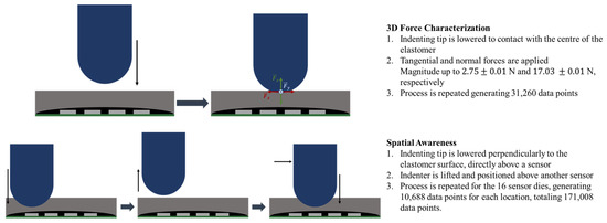 The data required to train an MLP with spatial awareness was collected using a procedure similar to response testing, as illustrated in Figure 10-bottom. However, this process was repeated for each sensor location, with all 16 locations assigned a unique set of (x,y) coordinates, originating from the center of the device’s surface.