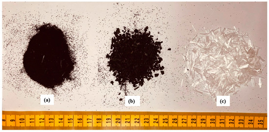(a) Powder rubber; (b) crumb rubber; (c) PVA fibers.