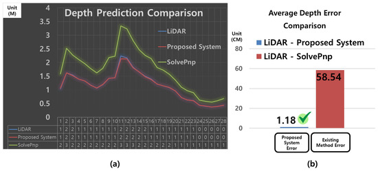 To evaluate the effectiveness of the proposed system, a depth estimation performance comparison was conducted against the baseline method, SolvePnP. As both approaches utilize only a monocular camera, this comparison ensures a fair evaluation under identical sensor conditions. LiDAR-based measurements were used as the ground-truth reference values.