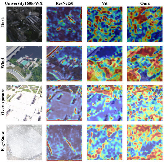 With the rapid development of deep learning, significant progress has been made in cross-view geo-localization technology [11,12]. However, in practical applications, drone-based cross-view geo-localization still faces numerous challenges, particularly due to factors such as viewpoint, illumination, resolution, and seasonal variations. Specifically, existing research has shown that extreme weather conditions, such as heavy rain and snow, will lead to a significant decline in cross-view geo-localization performance [13].