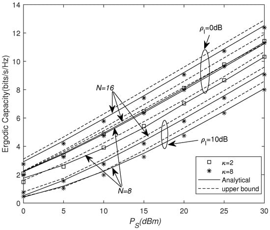 Finally, by substituting (17) and (18) into (16), the closed form for the average capacity can be obtained. In particular, by setting , we can further bound the ergodic capacity as