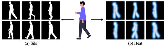Gait recognition [1,2,3] is a biometric technology that identifies individuals based on their walking patterns. As a long-range biometric technology in uncontrolled scenarios, it realizes identification by analyzing the dynamic patterns of human limbs while walking. Unlike other biometric methods such as face, fingerprint, and iris recognition [4,5,6], which require close-range acquisition and subject cooperation, gait recognition offers distinct advantages: it can be performed at a distance, requires no active participation from subjects, is difficult to deliberately disguise, and remains effective under varying lighting conditions and even at low resolutions. These features indicate that gait recognition has a broad application prospect in the fields of public safety monitoring, smart city construction, identity verification, access control, walking robots, etc. Especially in the scenarios that require non-intrusive long-distance monitoring, gait recognition has irreplaceable value [7,8,9,10,11].