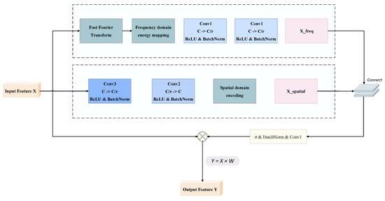 Features from both branches are integrated into a unified representation through a fusion function. The dimension of the fused features becomes , containing complementary information from frequency and spatial domains. Subsequently, feature modulation coefficients are generated through the transformation network :