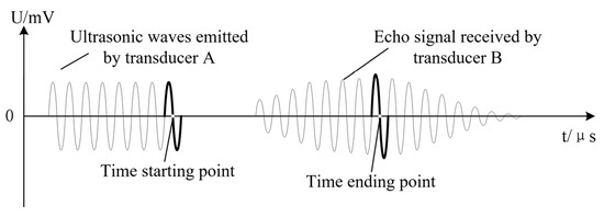 where is the propagation speed of the ultrasonic wave in the current environment, and is the crossing time of the ultrasonic signal transmission. In cases with fixed environmental parameters, the test accuracy of the target distance d is directly related to the determination of the crossing time (see Figure 3).