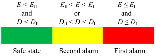 The specific alarm effect is shown in Figure 8. The electric field measurements are denoted as E, while the distance measurements are represented as D. The primary and secondary electric field alarm thresholds are labeled EI and EII, respectively, and the primary and secondary distance alarm thresholds are designated as DI and DII, respectively.