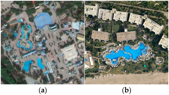 - AID: Wuhan University released this dataset. It comprises 30 scene categories and has 10,000 RS images with a size of 600 × 600 pixels. The number of images in each category varies from 220 to 420, and the spatial resolution changes from about 0.5 m to 8 m per pixel.