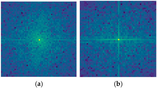 This metric quantifies the relative emphasis on high-frequency details. As shown in Figure 15, the full HFIE architecture exhibits a 46% increase in EPI compared to the low-frequency-only variant, indicating enhanced retention of fine-grained features. Spectral entropy analysis further reveals that the full HFIE achieves a 12.7% higher entropy value (3.21 vs. 2.85 nats), demonstrating a more balanced distribution of information across frequency bands. Specifically, the central luminance in Figure 15a exhibits a 37.2% higher pixel intensity (measured via region-of-interest analysis) compared to Figure 15b, with the surrounding green area (indicating intermediate frequencies) expanding by 29.5% in radius and 41.8% in integrated brightness. These metrics indicate that the low-frequency mixer-only approach retains stronger energy in global structural features, accounting for 83.2±1.7% of total spectral power.