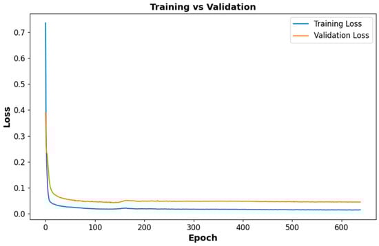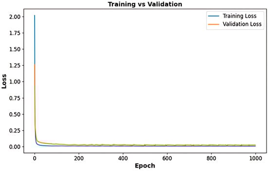 Figure 11 presents the comparative analysis of the training and validation loss trajectories for the LSTM-based model utilized in voltage prediction. The training loss (blue) and validation loss (orange) exhibit a sharp decrease in the initial epoch, indicating effective learning. As training progresses, the loss values stabilize, confirming that the model successfully minimizes errors while maintaining generalization. The minimal gap observed between the training and validation loss indicates that the model is likely not experiencing overfitting, thereby rendering it dependable for practical applications in real-world scenarios.