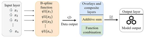 The KAN network is a method that combines neural networks and B-splines to efficiently fit complex nonlinear relationships in data, as illustrated in Figure 6. This figure presents a brief structure of the KAN network. The KAN network enhances the expressive power of the network by introducing the B-spline function to process the input data, especially in the case of high-dimensional data and complex tasks. The application of the KAN network to the calculation of resistance loss in the pipeline transportation process aims to solve the problem of resistance loss calculation when tailing slurry is transported in a pipeline. Conventional pipeline resistance loss calculation methods generally depend on experimental data. However, data collection is frequently arduous and time-consuming. The integration of the B-spline function within the KAN network facilitates the effective modeling of complex nonlinear relationships and enhances the prediction accuracy of high-dimensional data. The KAN network’s capacity to circumvent the overfitting phenomenon in high-dimensional data settings is attributable to its incorporation of the localization, non-negativity, and additivity characteristics inherent in the B-spline basis function. Concurrently, the KAN network enhances the efficacy of processing complex pipeline pressure fluid data. In certain applications, the KAN network is trained using rheological experiments and pipelines conveying experimental data. This training enables the network to accurately predict resistance loss in the pipeline. It also optimizes the design of the filling system and enhances the overall efficiency and safety of the mine filling project.