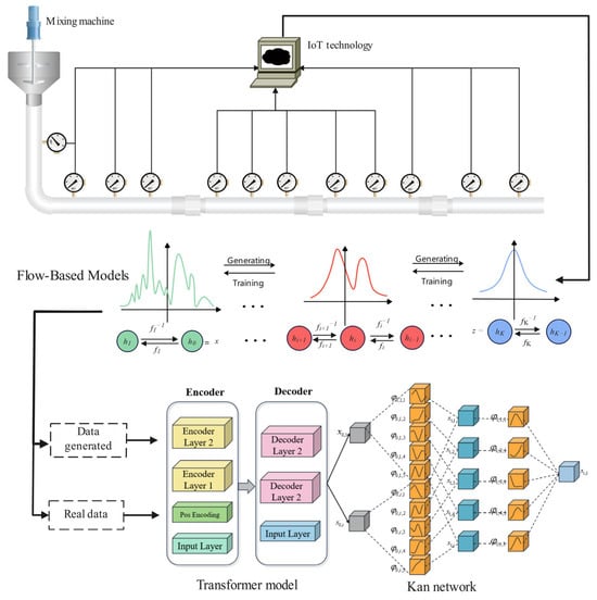 In practical mining operations, environmental factors, including temperature fluctuations, humidity variations, and safety constraints, frequently compromise raw data quality. These measurement errors are particularly challenging in mining environments, where they often evade timely detection. Furthermore, the prohibitive costs associated with repeated measurements significantly increase the economic burden of data acquisition. Consequently, enhancing model adaptability to complex, unstable operational environments emerges as a critical focus for future research. Future studies can further explore the adaptive ability of the FlowTransKAN model under a variety of complex working conditions and combine smart sensors and IoT technology to obtain more high-quality environmental data in real time. By enhancing the accuracy and coverage of data acquisition, the stability and accuracy of the model can be further improved. At the same time, considering the intelligent manufacturing needs driven by Industry 4.0, we can try to add a lightweight neural network architecture in the future, reduce the computational complexity of the model, and improve the real-time response ability.